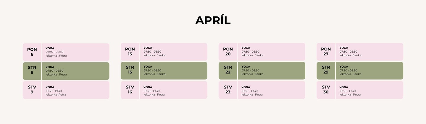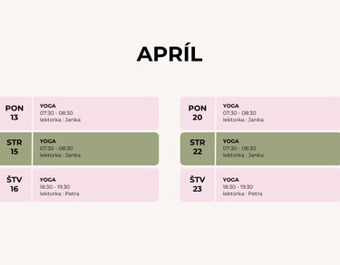 Cvičenie, ktoré ťa posilní, podporí správne držanie tela a prinesie vnútornú rovnováhu. Efektívne pohyby spevnia tvoj core, uvoľnia napätie a zlepšia flexibilitu. Pridaj sa k nám a zaži pocit ľahkosti a sily v každom pohybe!